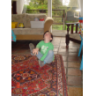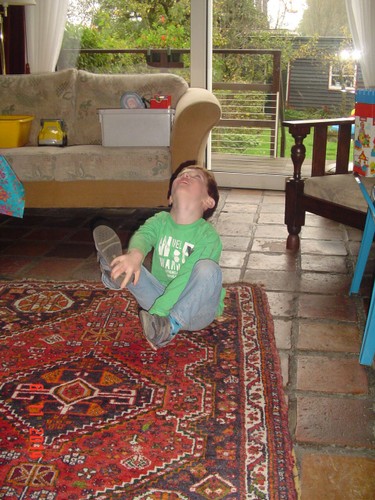 babbelen en meezingen met liedjes. Even over het kleed rollen en dan