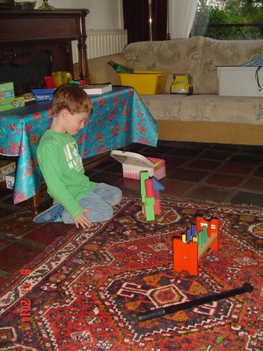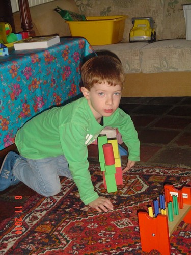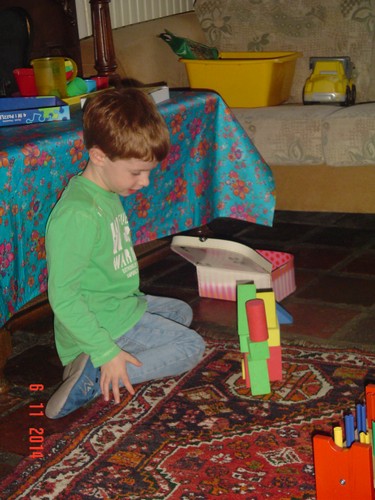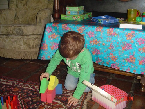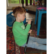 opdrinken, dan een ½ uur met blokken spelen, ze vallen steeds om,