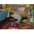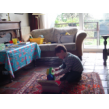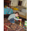 deur te roepen! Is op het kleed nog druk aan het spelen met kleine