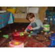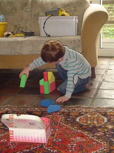 Verder met blokken, bouwt weer kastelen, fantaseert erbij: "steunmuur