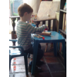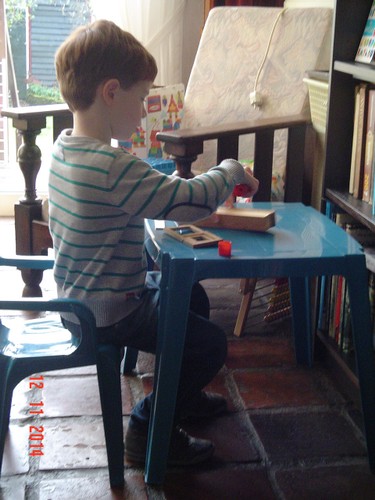 kleine plankjes uit de houtkist: "deze ga ik vastlijmen . . met