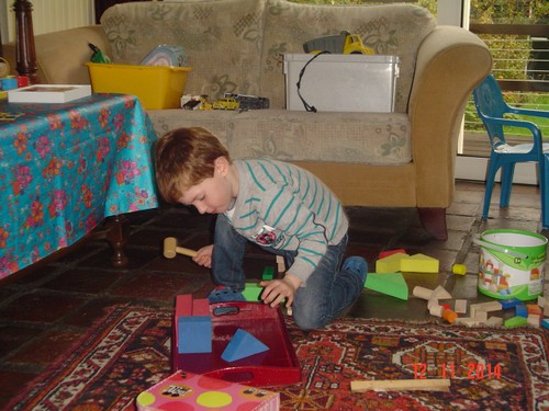 gaat aan de slag. Na 10 min.: "mag ik even Bob de bouwer kijken,
