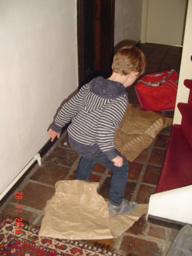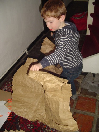 gang papier en karton klein snijden zodat we dat straks weg kunnen