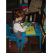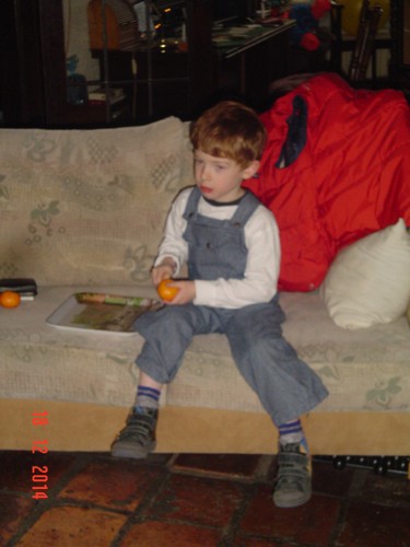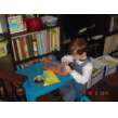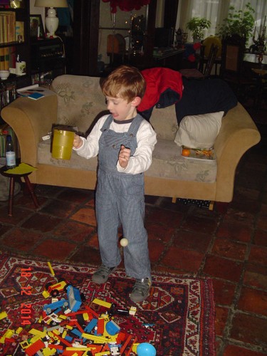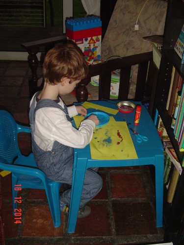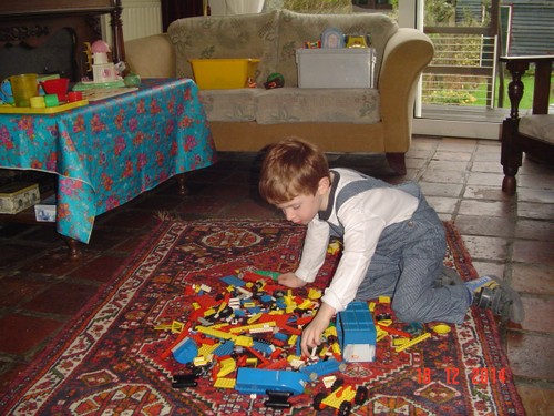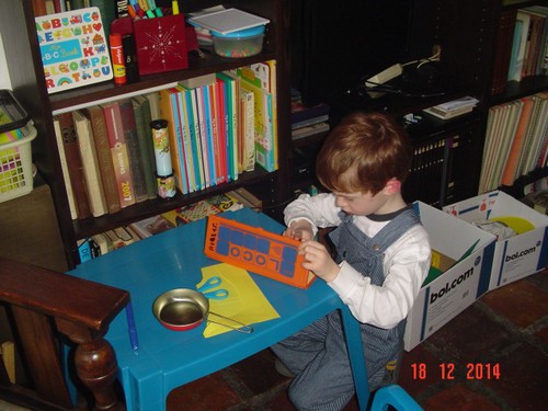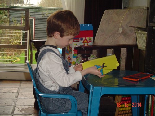 lego en ik ga kerstkaarten schrijven. Af en toe komt baas even naar