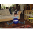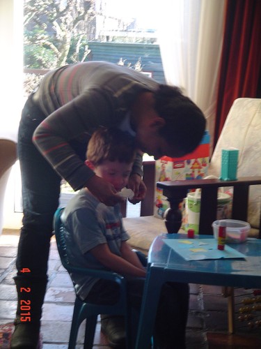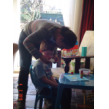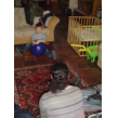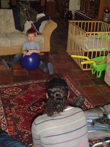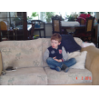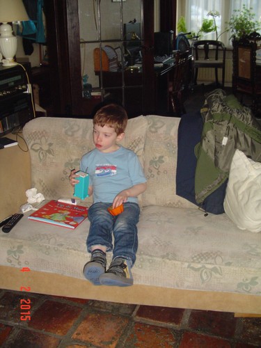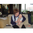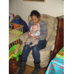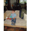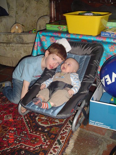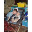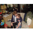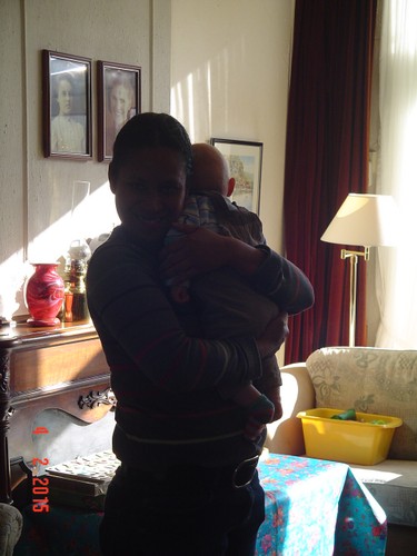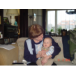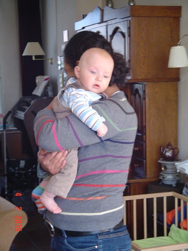 bij tR op schoot terwijl ik de fles ga opwarmen, Bart hobbelt ook mee