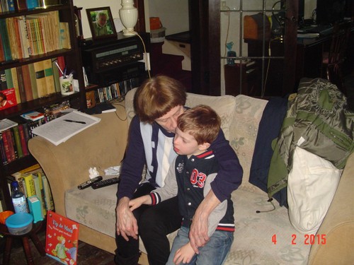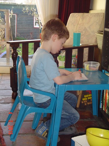 "twee boeken oma!!!!", hij geniet van de aandacht van z'n