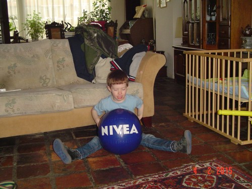 hoofd". Gaat dan met tR met de bal heen en weer rollen, eerst