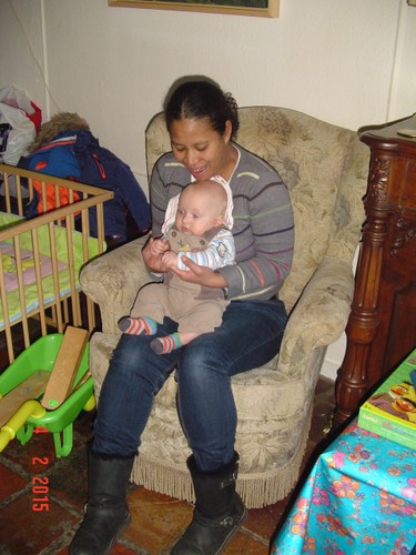 Chris krijgt net een schone luier en protesteert maar zodra ik met