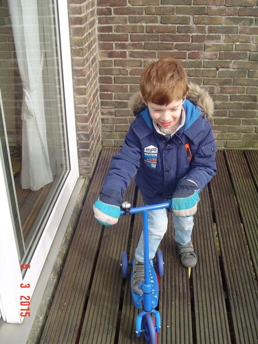 steppen op balkon, na een kwartiertje: "ik kom even binnen, even