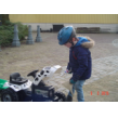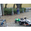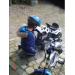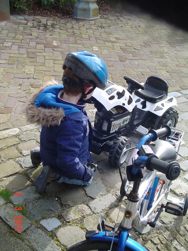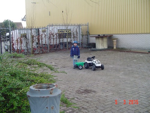fiets uit de kelder, tractor uit de garage. Bart rijdt, stept en