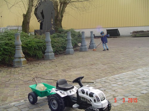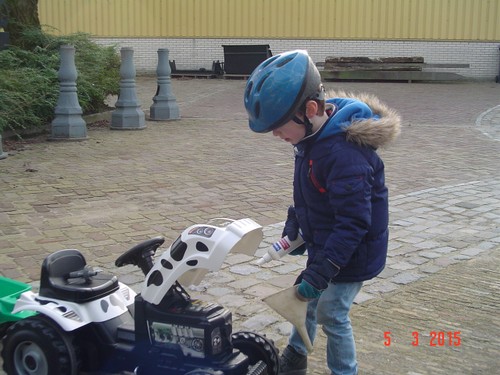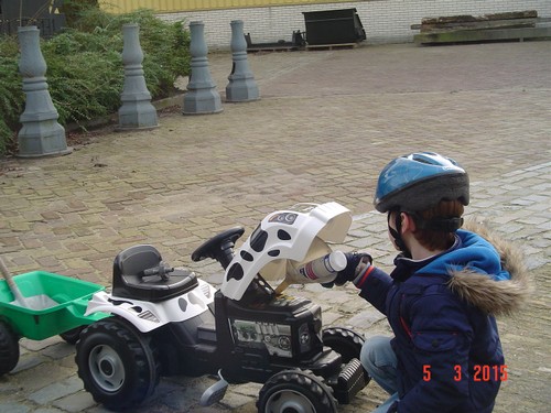 straks met de traktor rijden . . is Senne al thuis?", nee die is