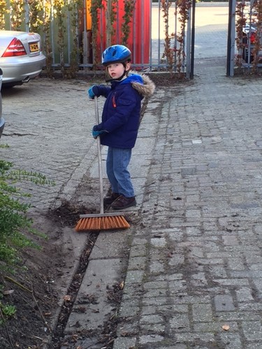 Bart fietst rondjes, is bezig met schep en bezem, kletst, tR tekent