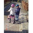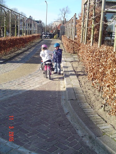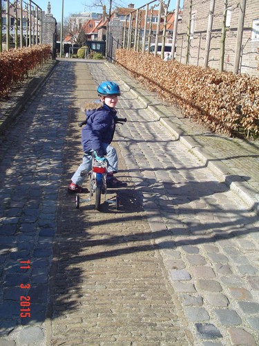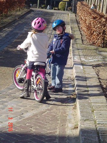 heeft er al gauw genoeg van want ze vindt het zwaar trappen, ik: ja