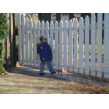 in hun tuin, zodra ze Bart bij het hek ziet staan, komt ze kraaiend
