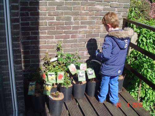 Bart gaat rozen water geven en ik ruim