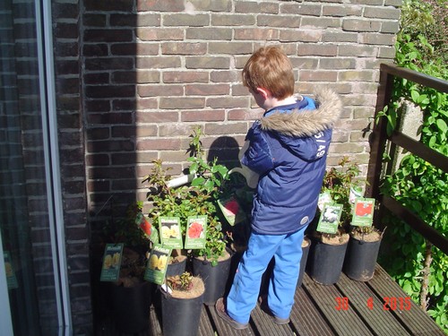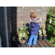 loopt hij al met de eerste pot naar het balkon. Ik ben druk bezig de