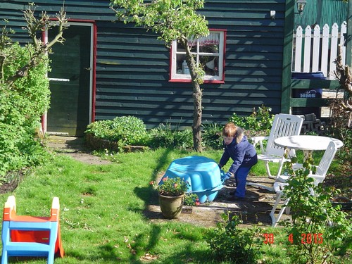 wat een mannetje! Verder werken in de tuin en ondertussen babbelen.