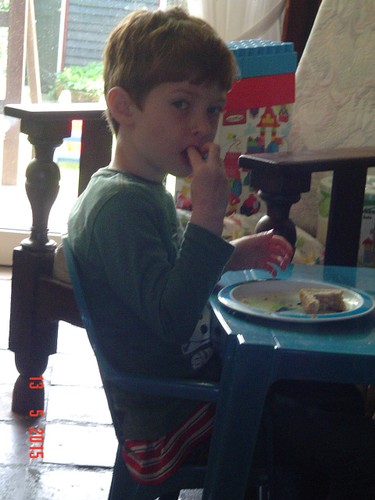 gaan we brood smeren, Bart eet een beetje stuiterig 2 boterhammen,