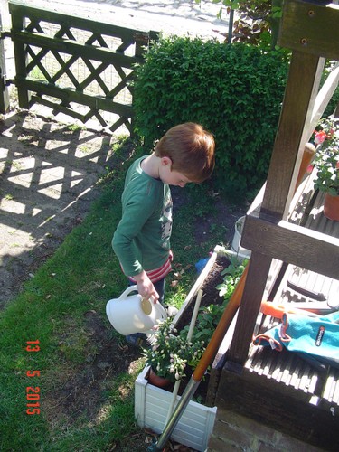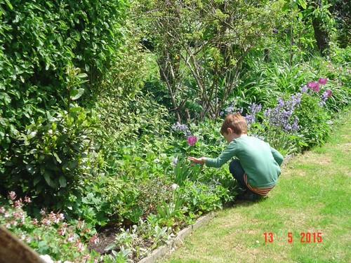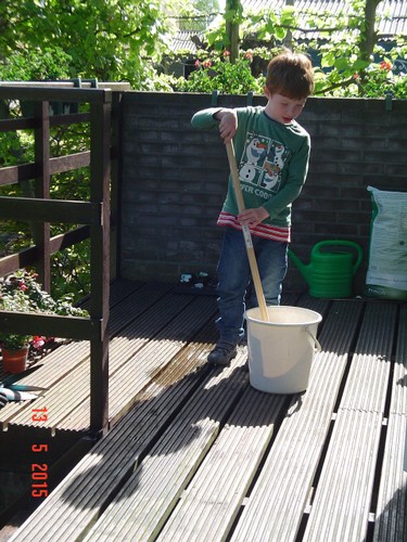 afknippen en onkruid trekken. Na een ½ uurtje: "ik kan wel even