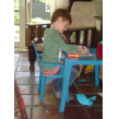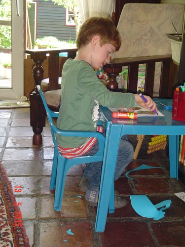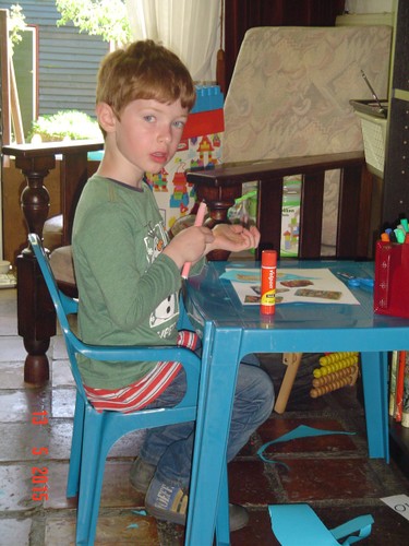 papier uit, knipt en plakt. Nu wil hij wel 'meisjesplaatjes'