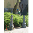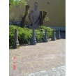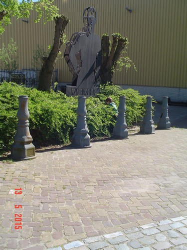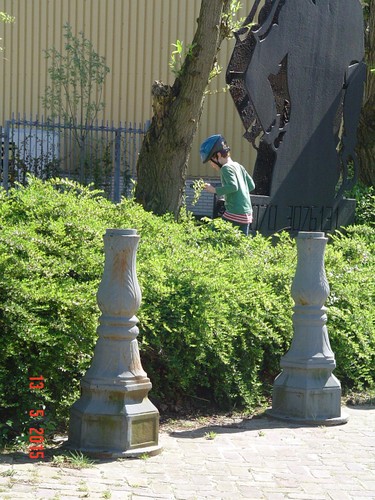 struiken op het slopersbeeld, komt terug om helm af te doen en