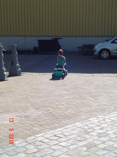 gereedschap te halen met z'n tractor en ik hoor hem een tijdje achter