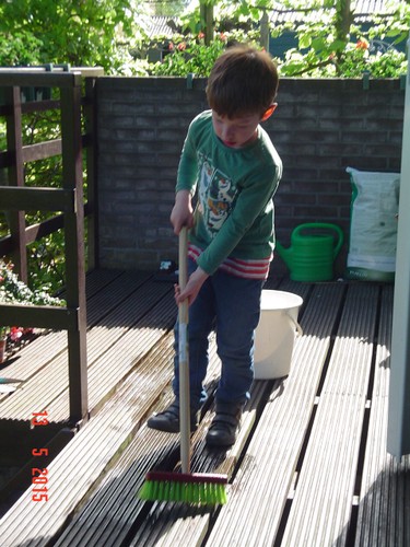 bezem: "kijk-es oma hoe goed deze bezem schoonmaakt",