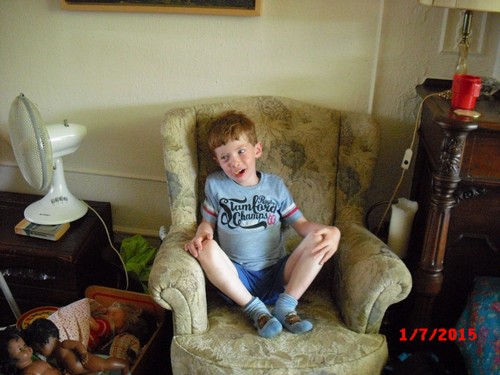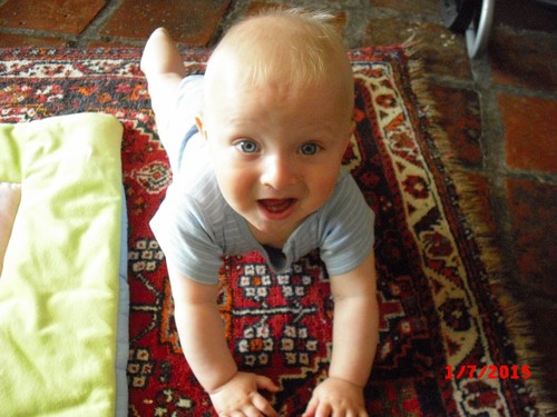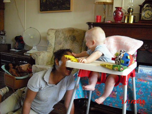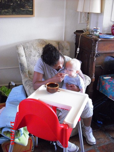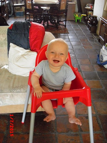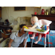 heerlijk. Dan Chris in de kinderstoel en kijkt vrolijk naar tR en