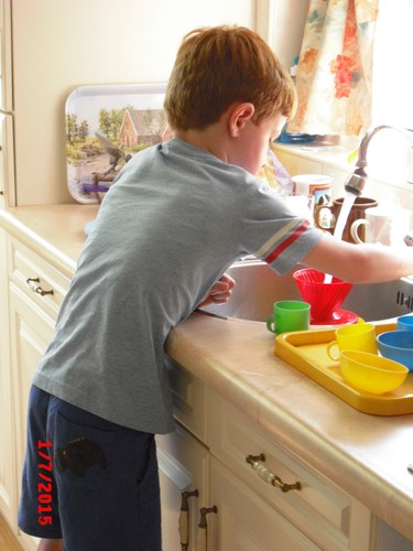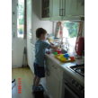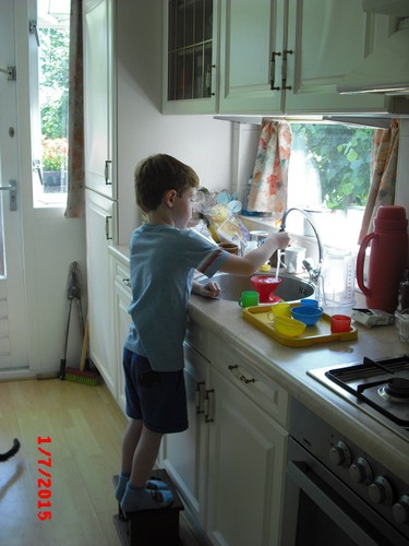 voor dat hij lekker met koud water gaat spelen in de keuken, "nee