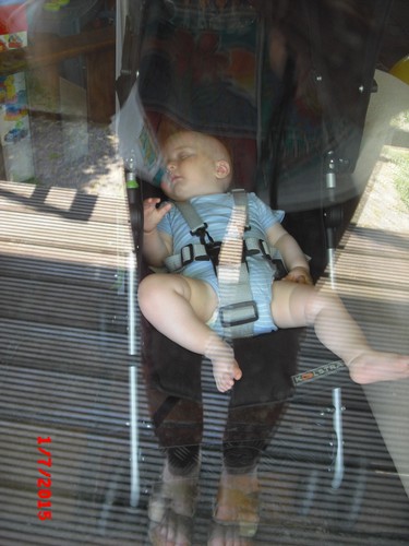 schone luier in de buggy voor het raam, mekkert een beetje dus ik