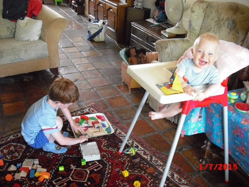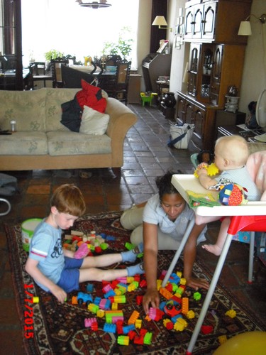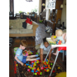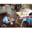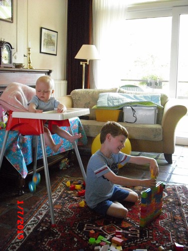 wipstoel en verder spelen. Na 10 min. is papa er, ik geef Chris nog