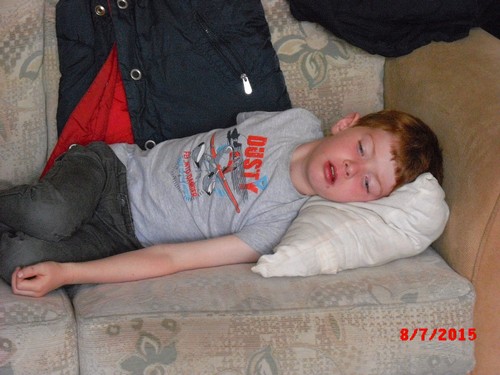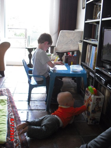 een ½ uurtje gaat Bart liggen op het kleed: "ik ben moe",
