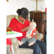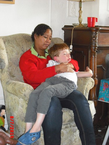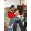 hij bij tR op schoot. Na 10 min. knapt hij op en kletst met tR over