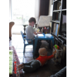 halen. Ondertussen speelt Chris vrolijk door in z'n kinderstoel,