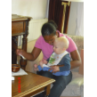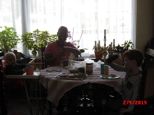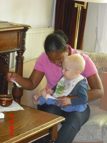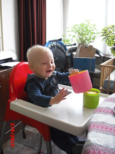 maken, ik zet kommetje op tafel, tR neemt Chris op schoot, en PATS,