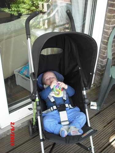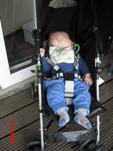 schone luier en een slaapje, in de buggy naar buiten en is dan al