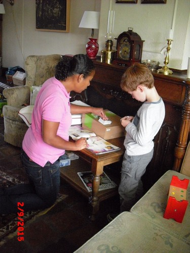 dierenplaatjes in het boek plakken. Na een tijdje wordt Chris wakker,