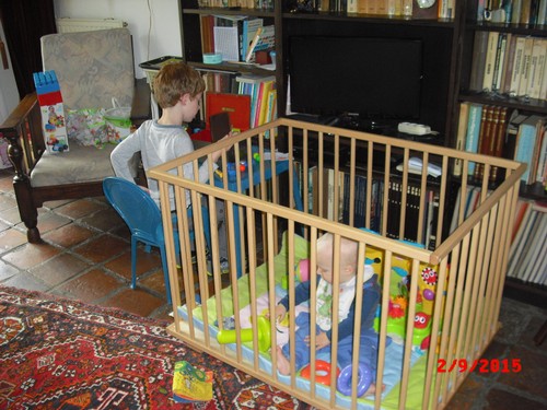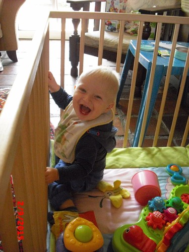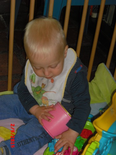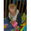 in de box spelen en z'n sokken uittrekken. Dierenboek is inmiddels