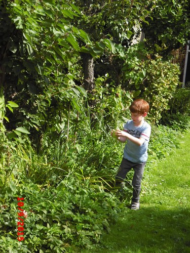 plukken in de tuin, "kijk-es hoe groot . . de vogels kunnen er
