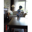 mee naar huis, dan even steppen op het balkon. Het is warm in de zon