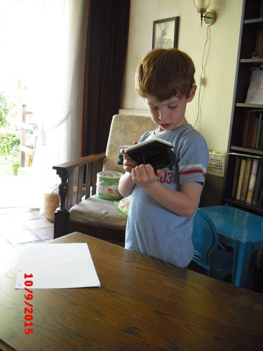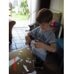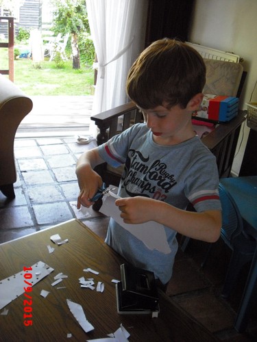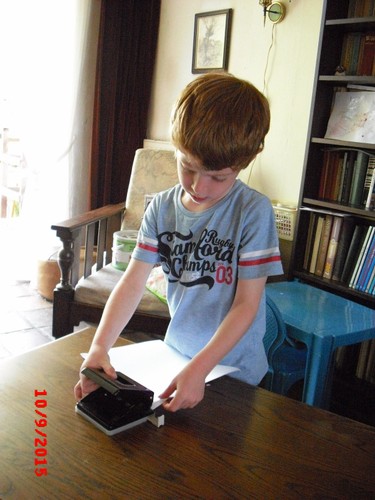 perforator en schaar, is geconcentreerd bezig, dus praat weinig. Nog