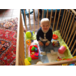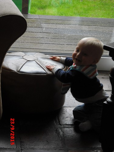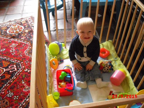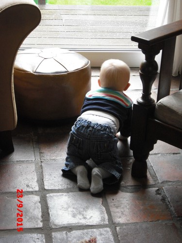 ondertussen met de buggy, terwijl ik opruim in de keuken. Ineens komt