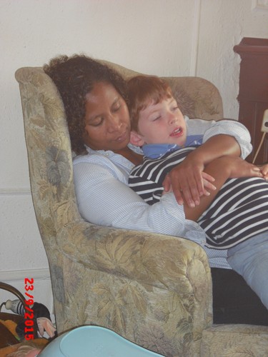 gaat nog steeds niet goed dus bij tR op schoot, dan wel fles bijna
