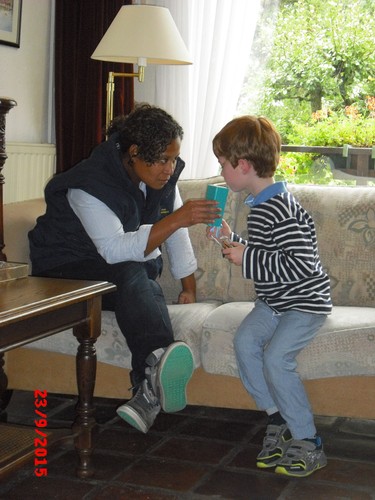 in mijn hoofd" van het springen. Dan eerst maar koekjes en sap,