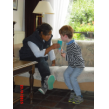 nog steeds pijn in z'n hoofd, hij hangt nu tegen me aan, hoofd niet