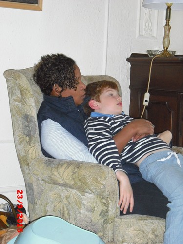 Bart gaat weer bij tR op schoot, beetje suffig kijkt hij dvd, dan nog