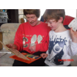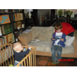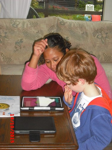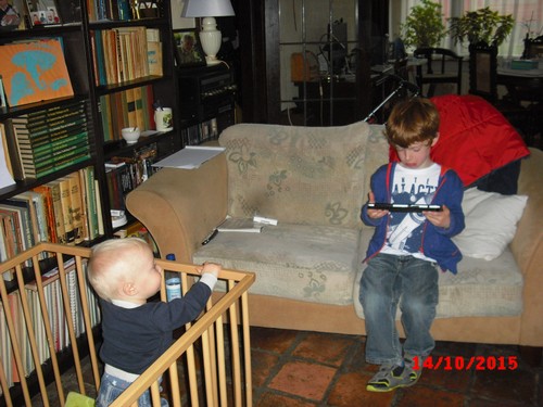 Bart en ik de nieuwe tablet uitproberen. Spelletjes uitzoeken duurt