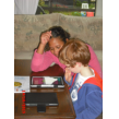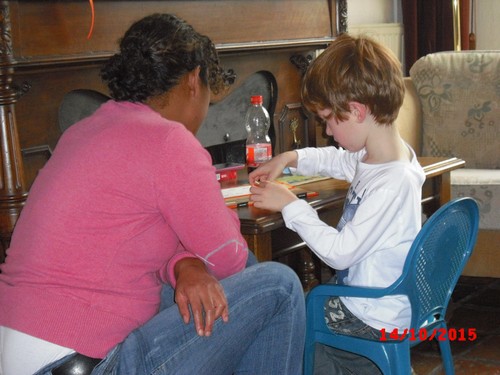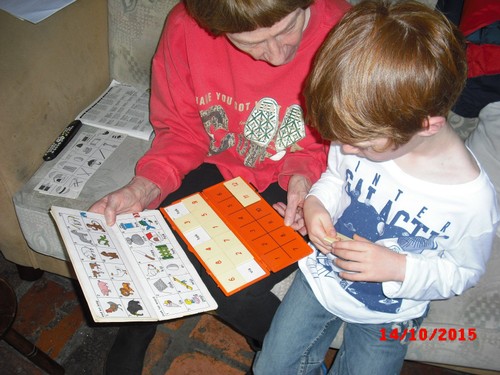 tR letters kleuren. Chris speelt met vormendoos, 't lukt hem af en