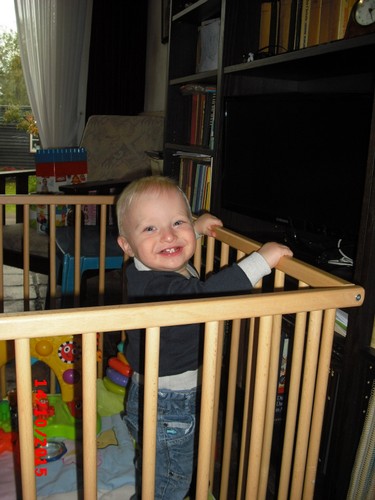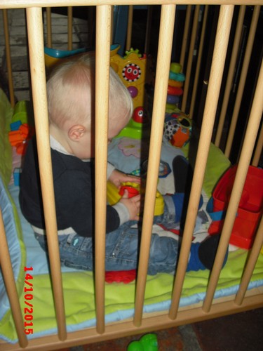 dus na ½ kom genoeg en spelen op kleed: rondkruipen en lekker staan