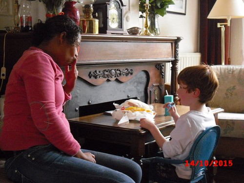 gespeeld met de tablet.Even sap en koekje en babbelen, wil dan